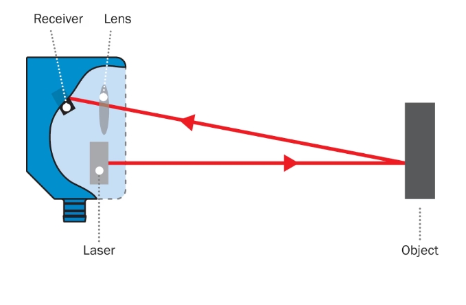 一個(gè)光點(diǎn)被投射到被測(cè)對(duì)象上。反射光再以特定角度映射到光敏接收器上。然后,根據(jù)發(fā)射和接收方向之間的角度,利用數(shù)學(xué)三角關(guān)系(拉丁文 Triangulum:三角形)計(jì)算對(duì)象的位置。